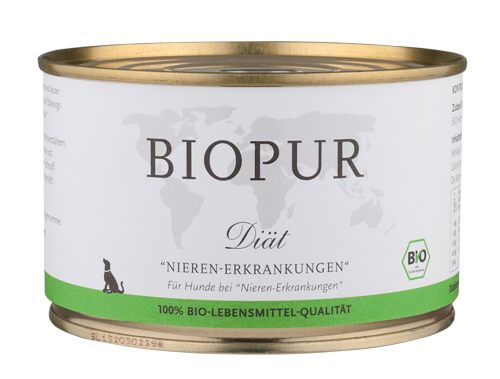 BIOPUR Nieren Erkrankungen - Diät Hundefutter für Hunde, die an Nierenproblemen leiden, speziell bei chronischer und akuter Niereninsuffizienz. Hilft dabei, die Bildung von Urat- und Zystinsteinen zu verhindern. Auch zur Prophylaxe von Urat- und Zystinsteinen.