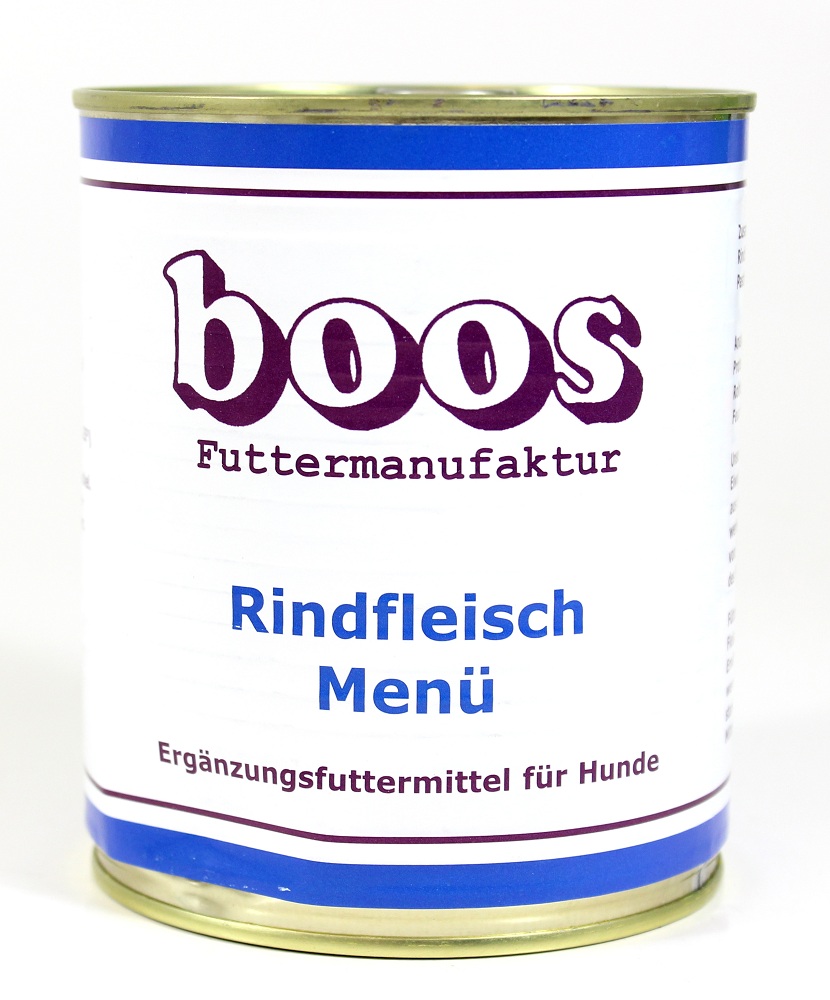 Boos Rindfleisch Menü - Enthält Rindfleisch, Reis, Karotten und Pastinaken. Besteht ausschließlich aus reinem, gekochten Fleisch. Ohne Eiweißextrakte, Konservierungsmittel, Farb- und Aromastoffe jeglicher Art. Die verwendeten Produkte stammen von frisch geschlachteten Tieren. Es werden keine tierischen und pflanzlichen Nebenprodukte verwendet. Ergänzungsfuttermittel für Hunde.
