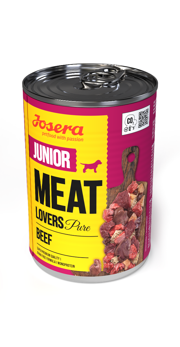 Josera Meat Lovers Junior Pure Beef - Monoprotein und getreidefrei, sowie mit 61,5% Rind. Mit Lachs als Lieferant von Omega 3-Fettsäuren DHA und EPA. Hergestellt ohne Gentechnik und ohne Tierversuche in Deutschland. Ohne künstliche Farb-, Aroma- und Konservierungsstoffe. Alleinfuttermittel für heranwachsende Hunde ab der 6. Woche.