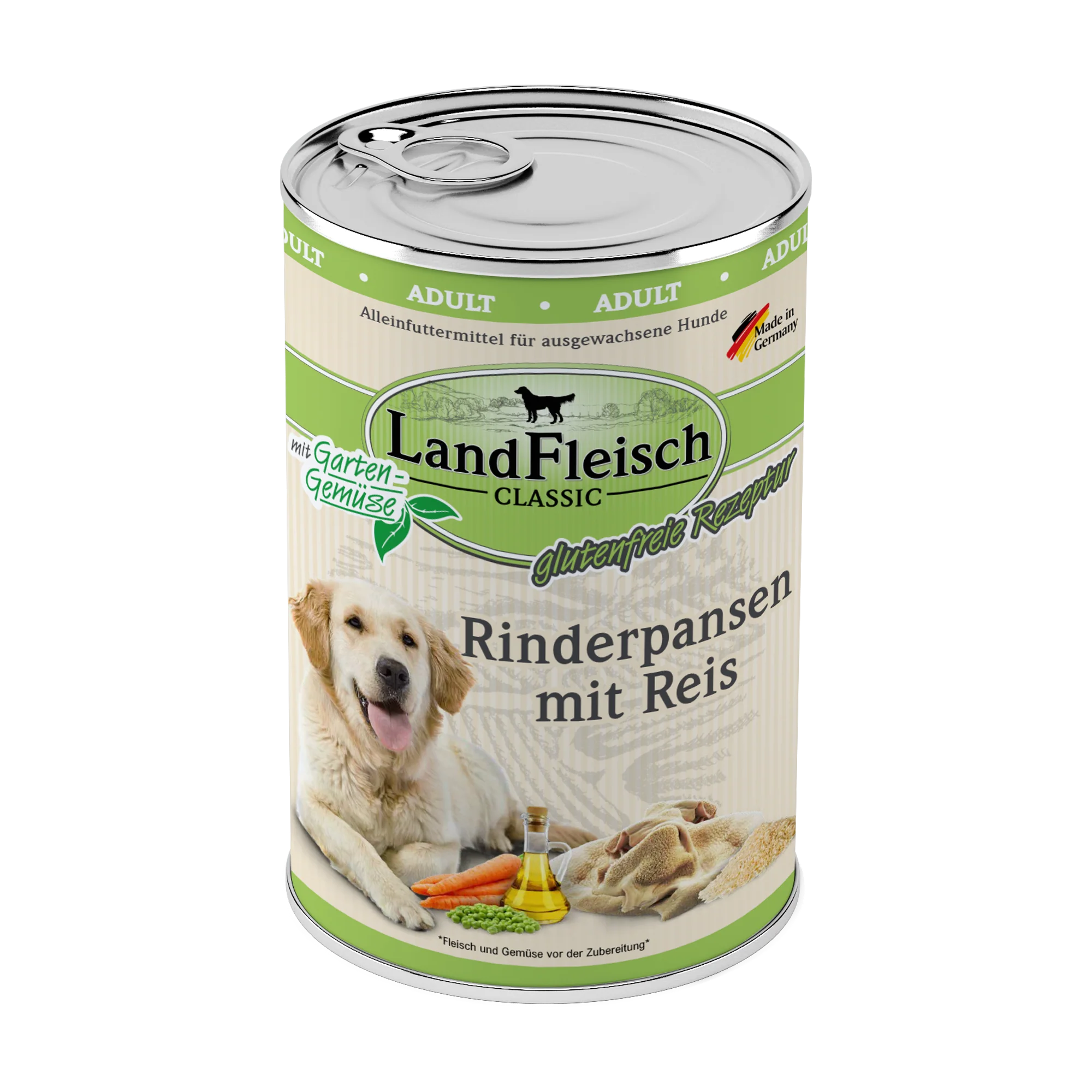 LandFleisch Dog Classic Rinderpansen mit Reis 12 x 400 g