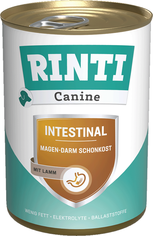 Rinti Canine Intestinal mit Lamm - Magen-Darm Schonkost, mit wenig Fett und leicht verdaulich. Zum Ausgleich bei unzureichender Verdauung und exokriner Pankreasinsuffizienz sowie zur Linderung Resorptionsstörungen des Darms. Hat einen niedrigen Fettgehalt. Leichtverdauliches Futtermittel mit erhöhtem Natrium- und Kaliumgehalt. Diät-Alleinfuttermittel für ausgewachsene Hunde.