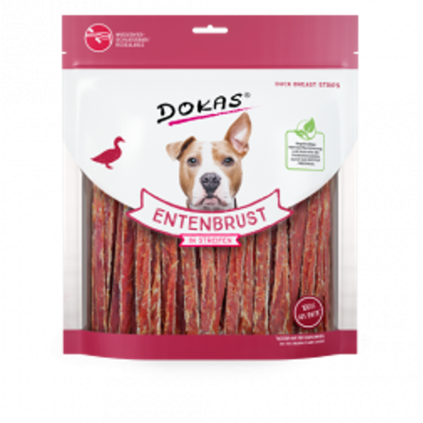 Dokas Dog Entenbrust in Streifen - Wild-Fleisch-Variation in der Sorte Ente in typischer Dokas Streifenform. Ergänzungsfuttermittel für Hunde.