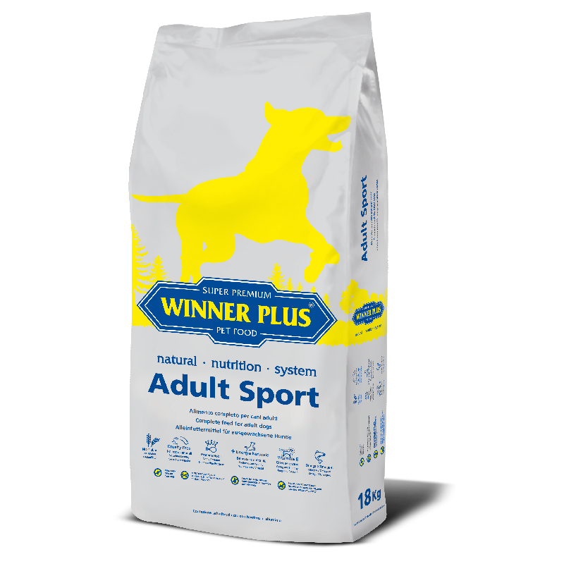 Winner Plus Adult Sport - glutenfrei. Hergestellt ohne klassisches Getreide, Eier, Mais, Milchprodukte, Soja, chemische Farb-, Geschmacks-, Aromastoffe und ohne Gluten. Ohne Tierversuche hergestellt. Alleinfuttermittel für Hunde aller Rassen mit intensiver körperlicher Aktivität.