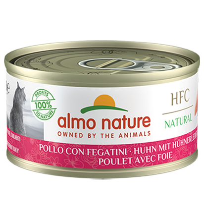 Almo Nature Natural Huhn mit Hühnerleber - glutenfrei. Besteht aus 70% Huhn und 5% Hühnerleber. Ist ohne Zusatzstoffe, Mineralstoff- bzw. Vitaminzusätze. Besteht aus Zutaten, die für den menschlichen Verzehr geeignet sind, jedoch aus wirtschaftlichen Gründen nicht dafür verwendet wurden. Ergänzungsfuttermittel für Katzen.