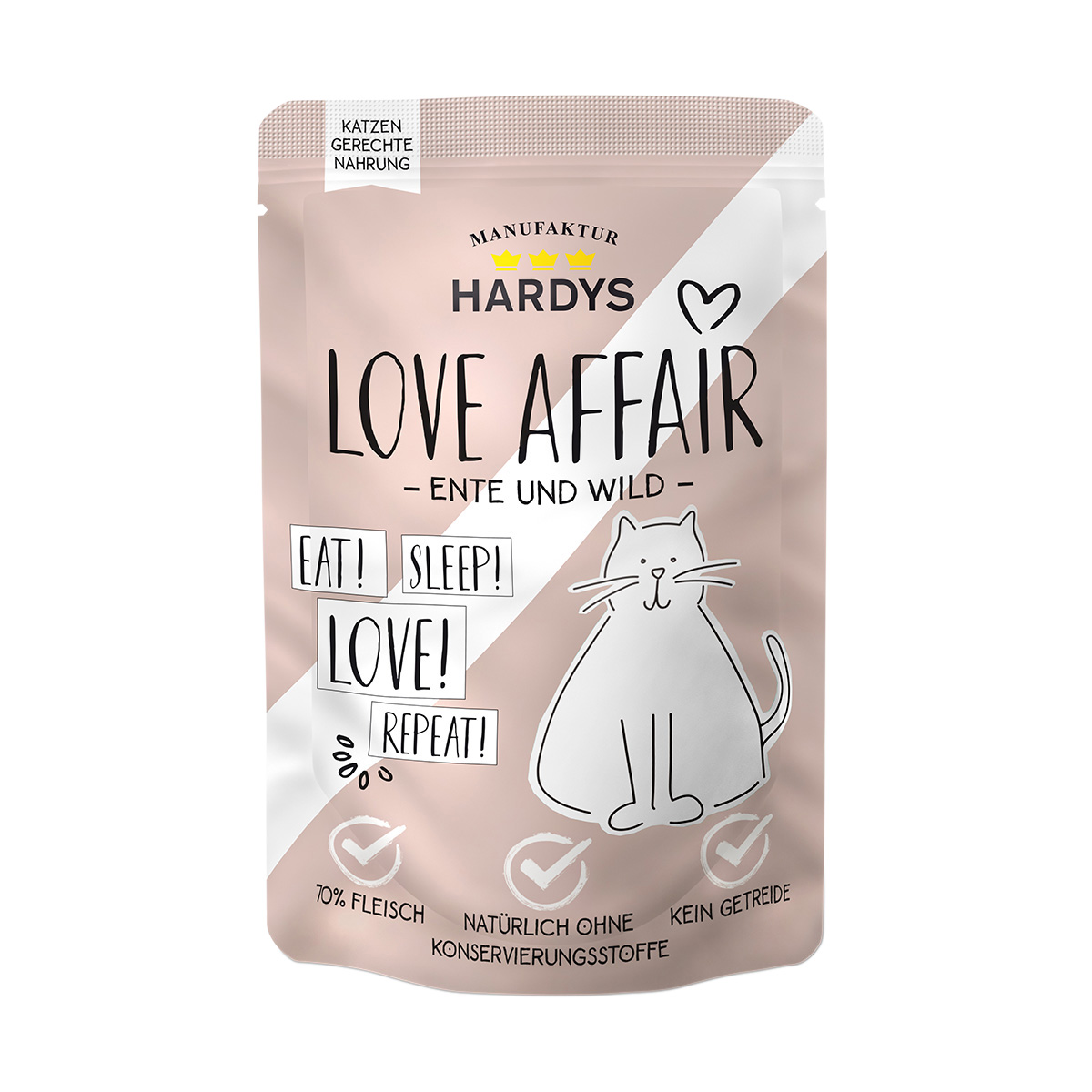 Hardys Traum Love Affair Soulfood Ente & Wild - getreide- und glutenfrei, sowie ohne künstliche Zusätze, Konservierungsstoffe oder Aromen. Enthält 50 % Wild und 20 % Ente. Alleinfuttermittel für Katzen.