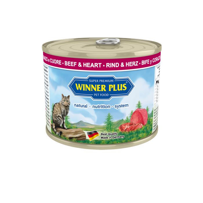 WINNER PLUS SUPER PREMIUM CAT MENÜ RIND & HERZ ist ein hochwertiges Alleinfutter für Katzen mit Rind und Herz aus bestem, schlachtfrischem Fleisch in Lebensmittelqualität hergestellt. Die hochwertigen Rohstoffe werden schonend verarbeitet, sind getreide- und glutenfrei, allergenarm und garantieren beste Verträglichkeit und eine sehr hohe Akzeptanz. Durch den Zusatz von Taurin, L-Carnitin sowie Vitaminen und Mineralien werden Katzen gesund und optimal ernährt.