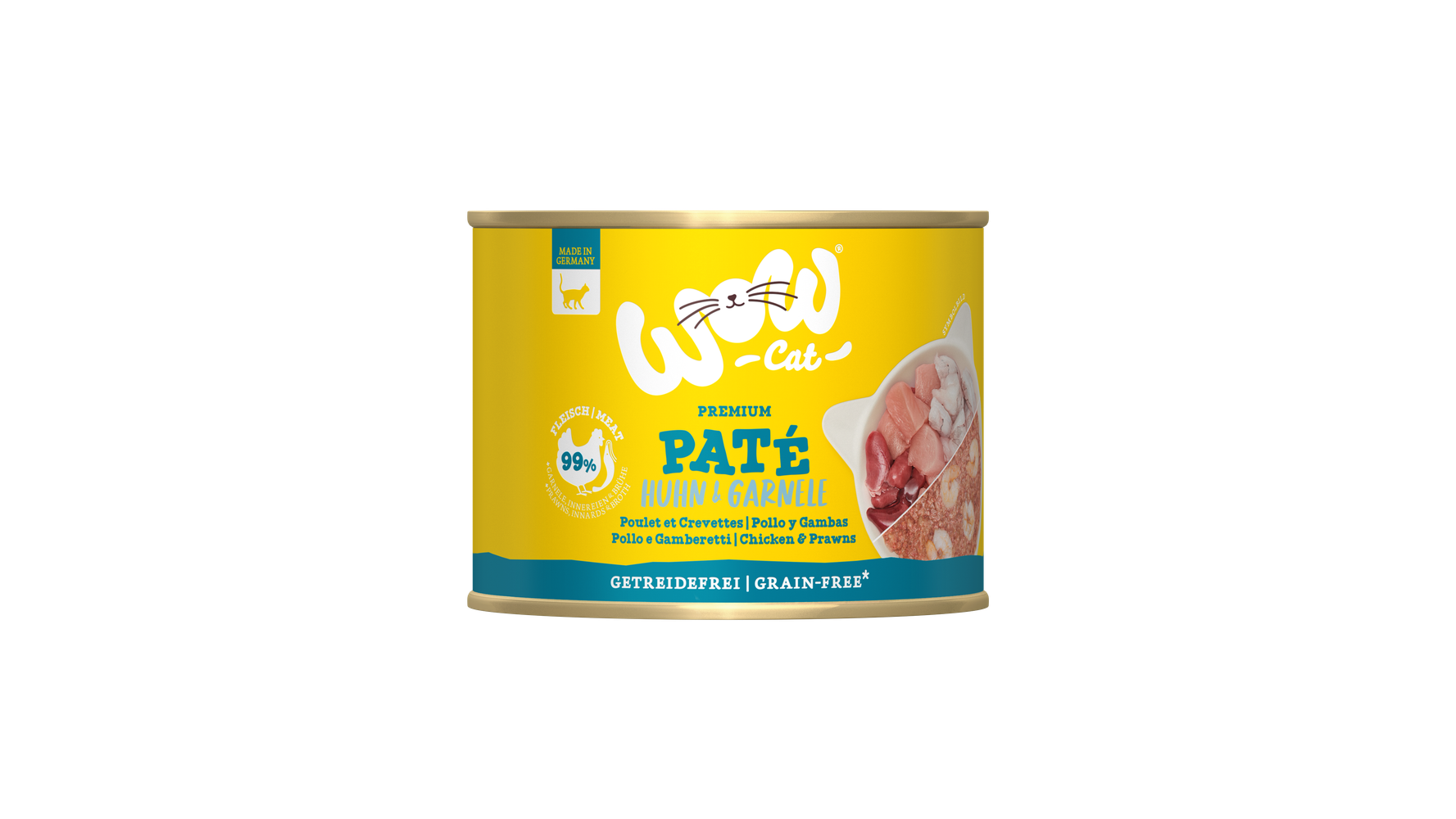 WOW Cat Adult Paté Huhn & Garnele - getreide- und glutenfrei. Enthält 70 % Huhn und Garnelen. Mit 99% Fleisch aus Garnelen, Innereien und Brühe. Ohne künstliche Laktose, Gluten, Farb- und Lockstoffe, Zuckerzusatz und Konservierungsmittel. Wurde ohne Tierversuche hergestellt. Alleinfuttermittel für ausgewachsene Katzen aller Größen und Rassen.