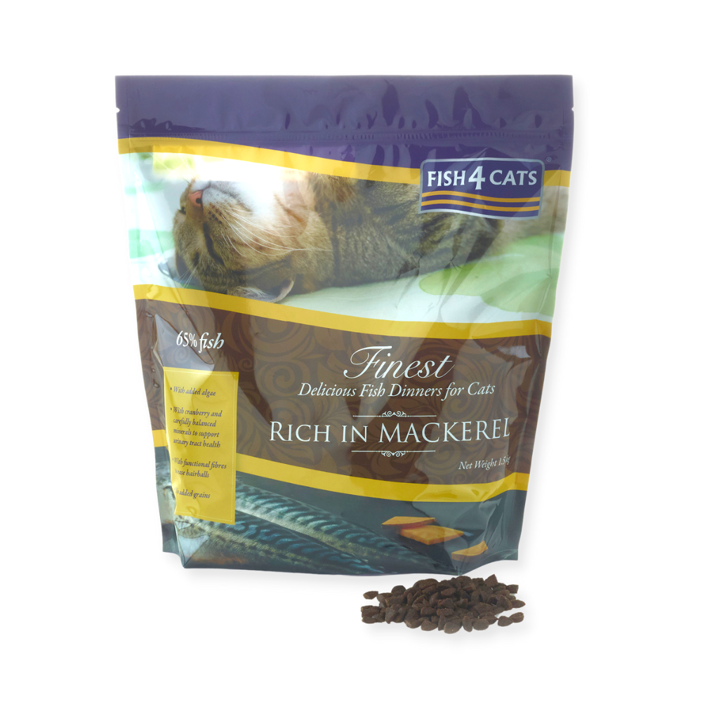 Fish4Cats Finest Adult Makrele - getreidefrei, enthält mehr als 65 % Fischanteil. Mit Makrele, einem Protein, das leicht verdaulich ist und somit den Magen der Katze schont. Makrele ist eine hervorragende Quelle für Omega-3-Fettsäuren und enthält relativ wenig gesättigte Fettsäuren und Zucker. Der ausgewogene Mineralstoffgehalt entlastet die Nieren und die beigefügten Cranberries unterstützen die Gesundheit der Harnwege. Alleinfuttermittel für Katzen.