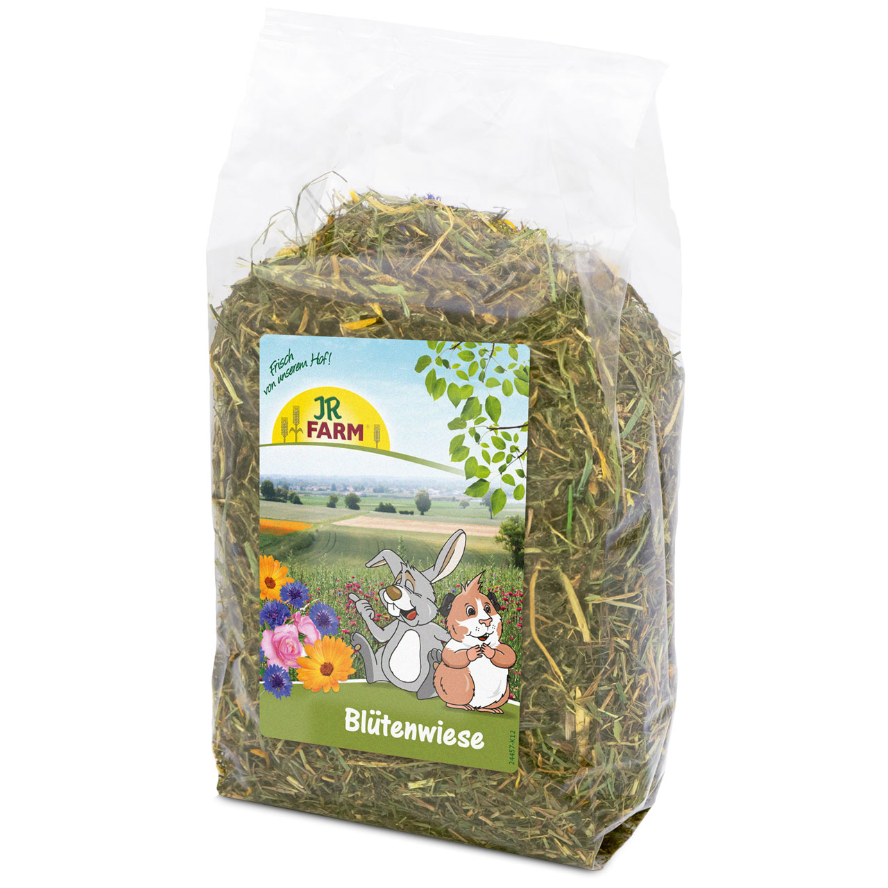 Heu dient als nährstoffreiche und artgerechte Ernährungsbasis für Heimtiere und fördert beim Nagen den natürlichen Abrieb der lebenslang wachsenden Zähne. Die enthaltene Rohfaser nährt wichtige Darmbakterien und stärkt dadurch die Darmflora. Angereichert mit hautberuhigenden Ringelblumenblüten und duftenden Kornblumen und Rosenblüten, ist die bunte Blütenwiese ein purer und natürlicher Gaumenschmaus!