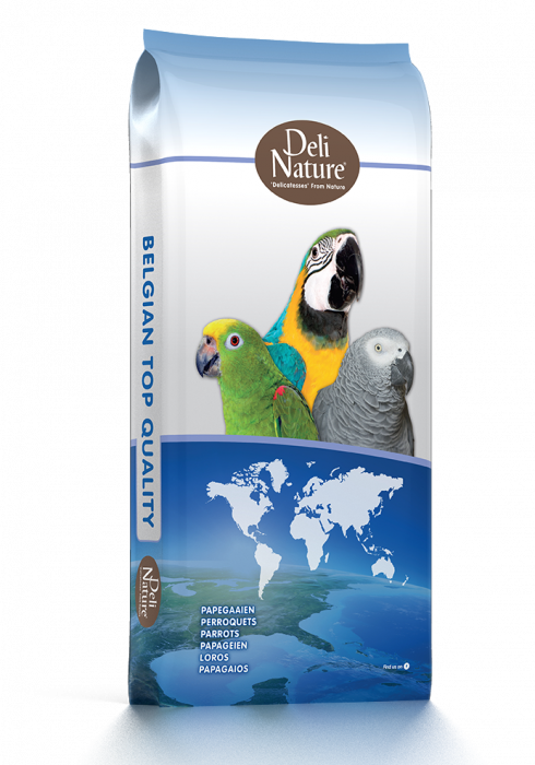 Deli Nature Aras Excellent - eine grobe Mischung mit 40% Sonnenblumenkernen, Zirbelnüsse, Walnußstückchen, Rosinen, ideal für Papageien, die eine kräftigere Mischung benötigen, wie Aras, Edelpapageien, Goldsittiche, Molukken Kakadus. Ohne Mais und ohne Erdnüsse.