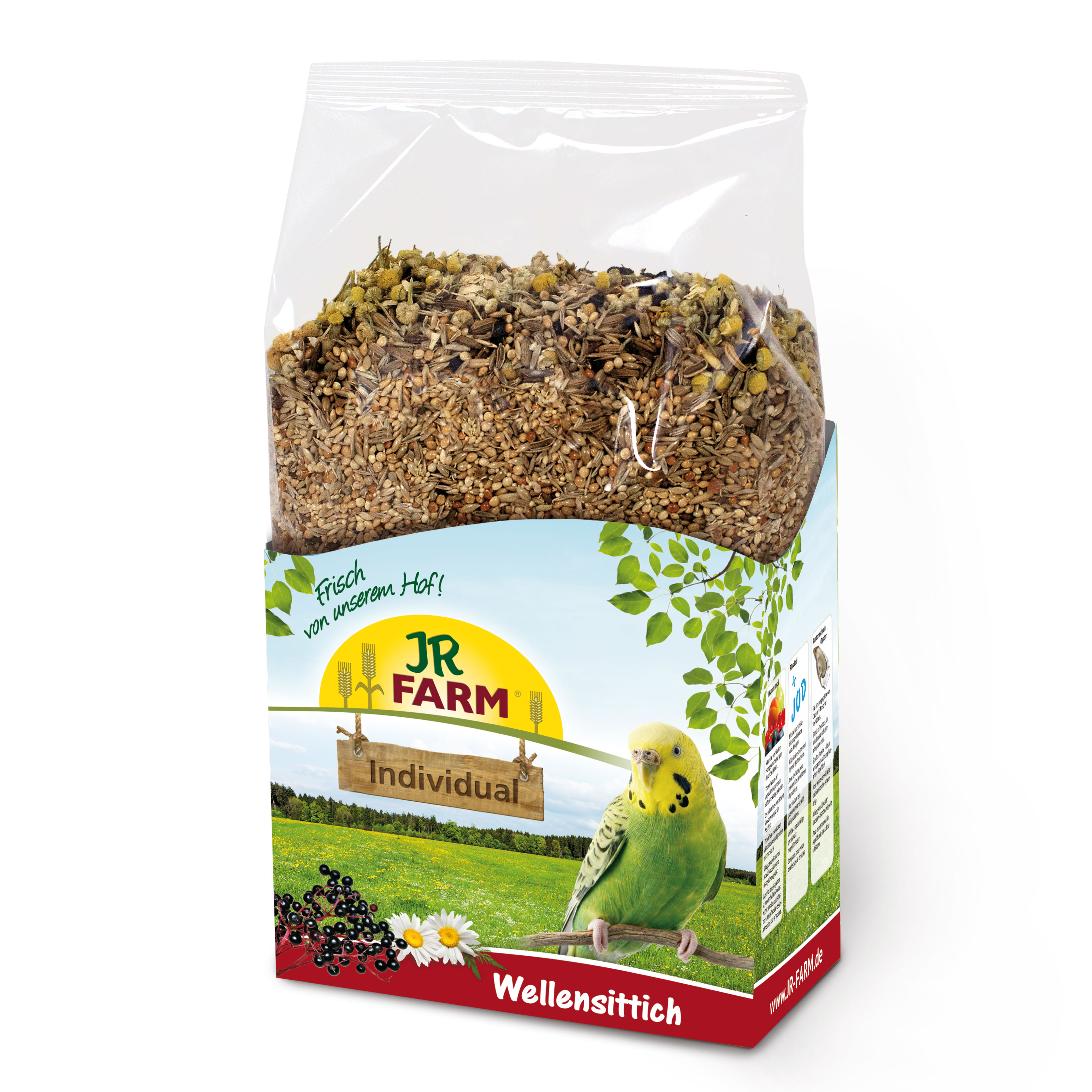 JR Farm Birds Individual Wellensittich - enthält Kanariengrassaat, Manna Hirse und Silberhirse. Angereichert mit hitzebehandelten Austernschalen für ein ausgeglichenes Calcium-Phosphor Verhältnis und lebenswichtigen Vitaminen und Spurenelementen auf allen Zutaten, so dass es zu keinem Mangel durch Selektion kommen kann. Alleinfuttermittel für Wellensittiche.
