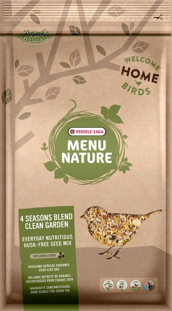 Versele Laga Menu Nature 4 Seasons Blend Clean Garden - mit Sonnenblumenkernen, Nigersaat und Haferkernen. Ist eine abwechslungsreiche Qualitätsmischung ohne Schale mit geschälten Sonnenblumenkernen, Erdnüssen und Hafer für Gartenvögel das ganze Jahr über. Hinterlässt keine Spuren auf Ihrem Rasen oder Ihrer Terrasse. Alleinfuttermittel für Gartenvögel.